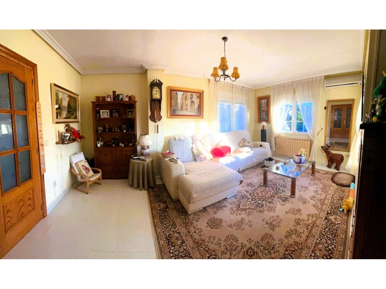 Impresionante chalet unifamiliar en Urbanización Los Pinos. Situado en zona residencial tranquila, a tan sólo 5 minutos de Toledo y 40 de Madrid, fácil conexión con la Autovía A-42. Parcela de esquina con total privacidad. Vivienda distribuida en 2 plantas. La planta baja se compone de un apartamento de invitados o vivienda independiente que consta de 3 dormitorios, 1 cuarto de baño, y sala de estar o zona de ocio. Además cuenta con cuarto trastero, garaje cerrado y sala de caldera. En la primera planta se encuentra la vivienda principal compuesta de 4 dormitorios, cocina independiente, 2 cuartos de baño (uno de ellos en suite), y amplio salón comedor con salida a terraza con vistas despejadas. Amplia parcela de esquina con privacidad y jardín de fácil mantenimiento.